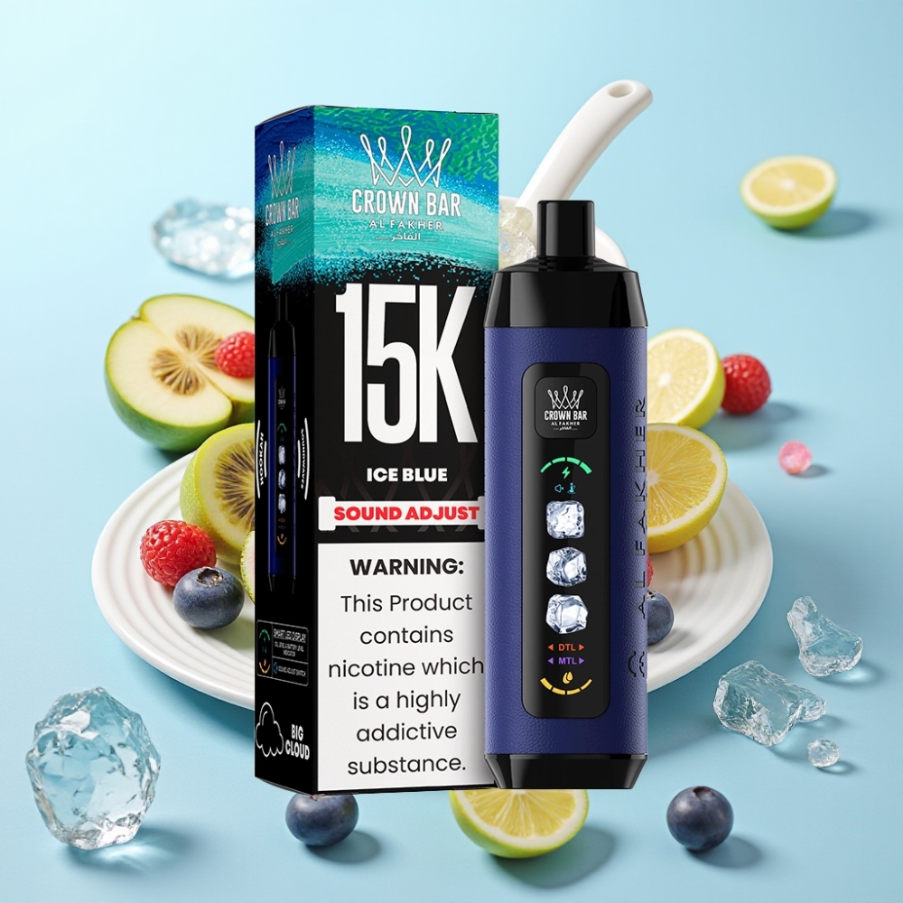 Al Fakher 15k Ice Adjust Clouds Engångsenhet 15000 Puffar Isblå LED Display Mesh Coil