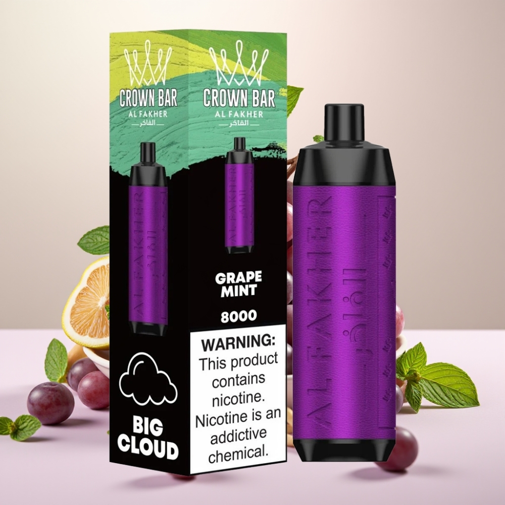 Al Fakher Crown Bar 8000 Crystal 18ml Druva Mynta vape Sverige grossist