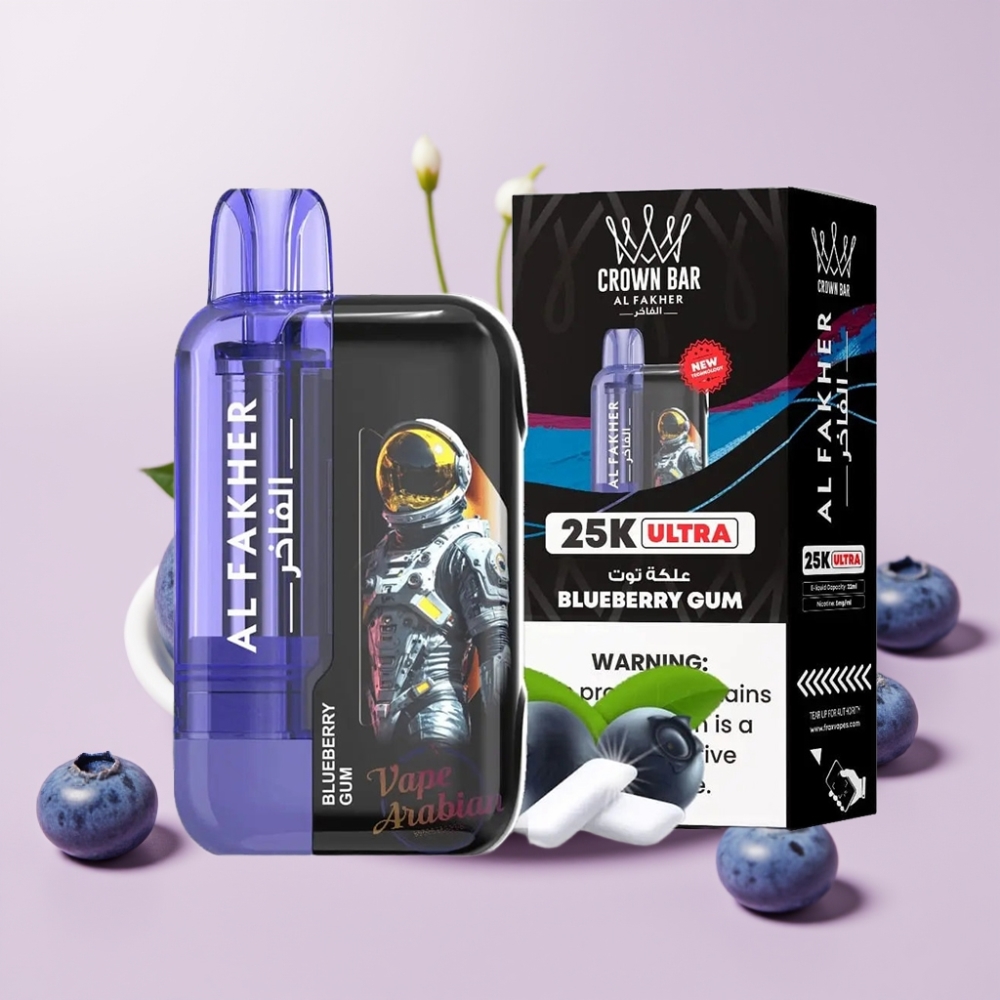 Al Fakher Crown Bar Ultra 25K Blåbärstuggummi Med LED & Mesh Coil