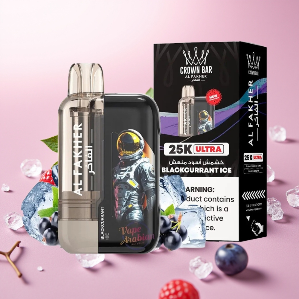 Al Fakher Crown Bar Ultra 25K Svartvinbär Is LED vape Sverige grossist