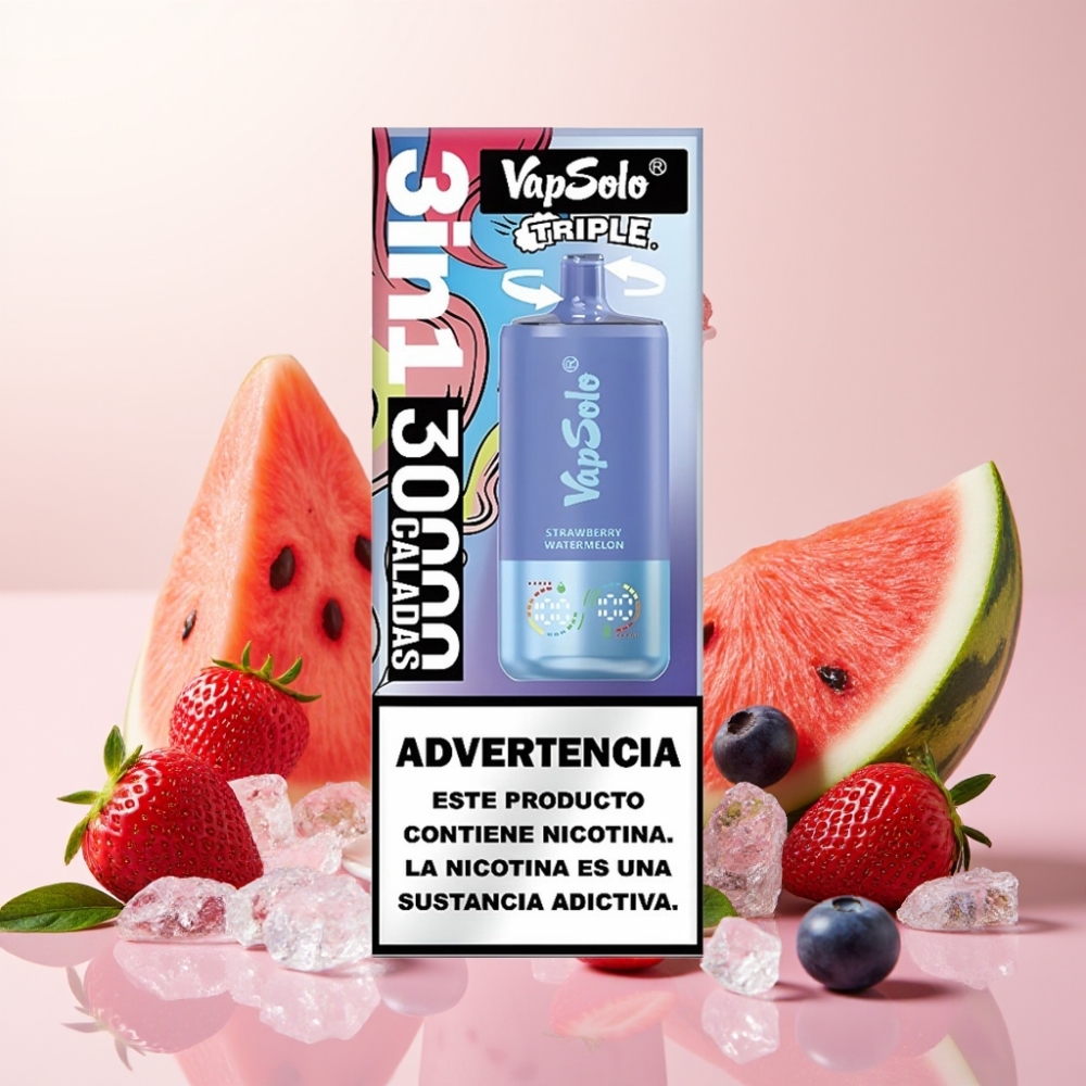 VapSolo Triple 30000 Puffs 40ml Jordgubb Vattenmelon & Blåbär Is