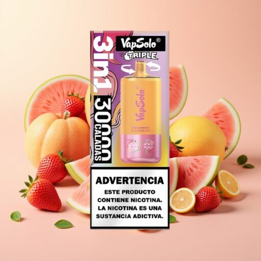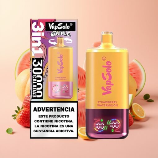 VapSolo Triple 30000 Puffs Typ-C Jordgubb Vattenmelon & Citron Persika